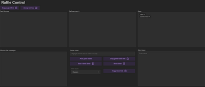 Lastly, all links to the corresponding pages involved with this specific raffle controller id can be copied via their respective “Copy link” buttons, for easy pasting into OBS. These copy buttons are hidden on mobile/small browser windows.